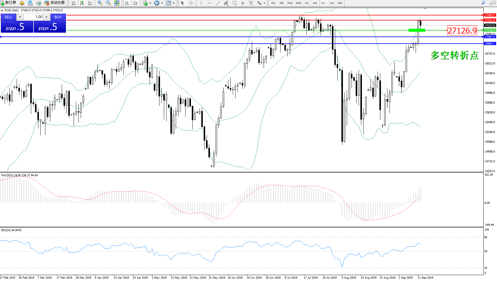 道琼斯指数9月12日(周四)收盘上涨45.40点,涨幅0.17%,报27182.45点。美国股市小幅走高,因市场再度燃起对中美达成贸易协议的憧憬,此外,欧洲央行宣布的新一轮刺激措施也对股市有所提振。市场迎来了一连串完美的好消息,投资者现在感到松了一口气,认为情势或许不像两个月前那么糟糕。