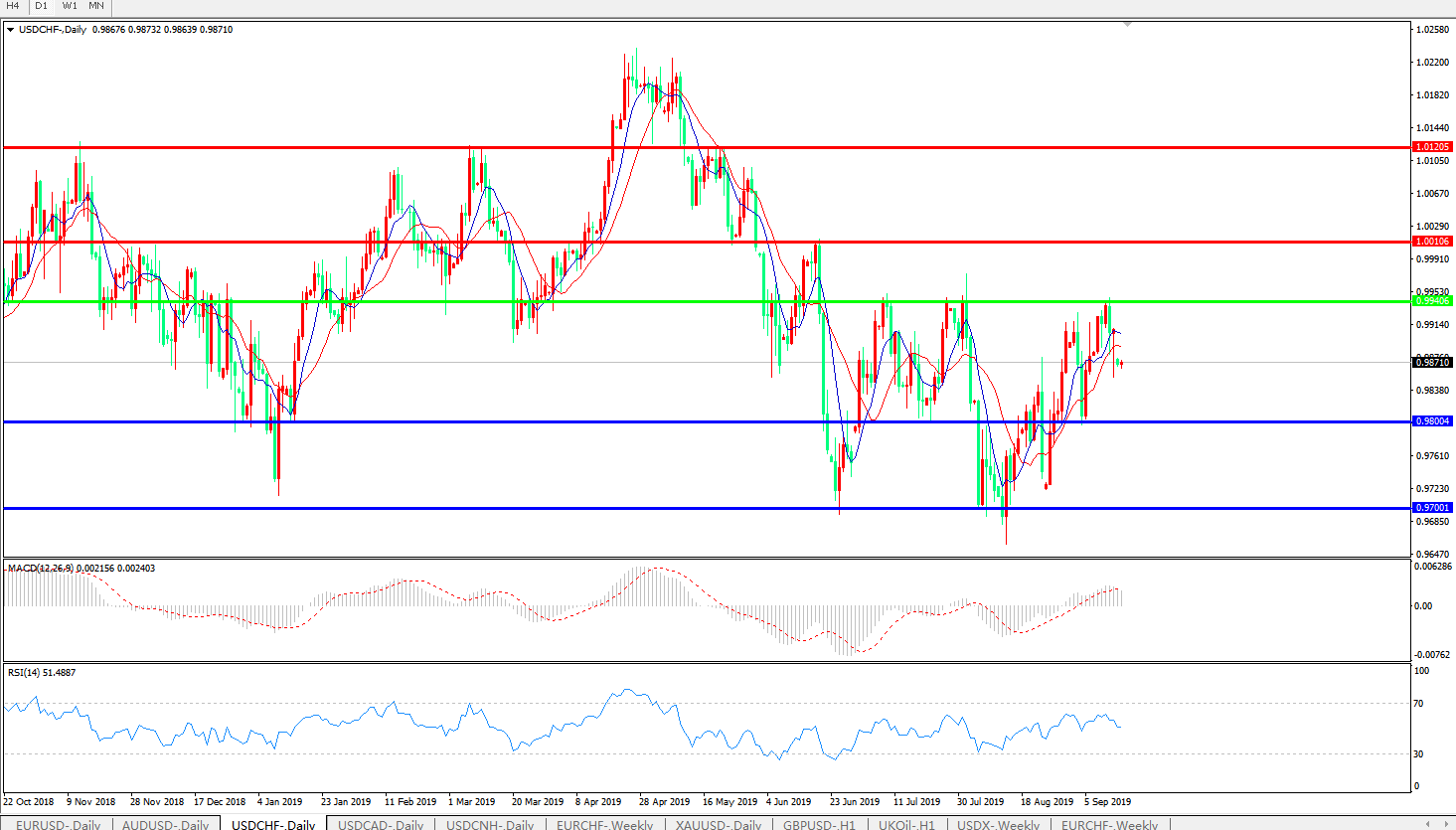 美元瑞郎USDCHF   日线图:
