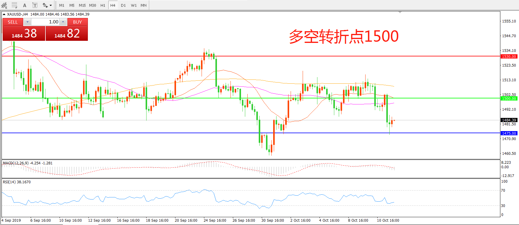 交易策略:在1500.00之下看跌,目标1475.00   1450.00