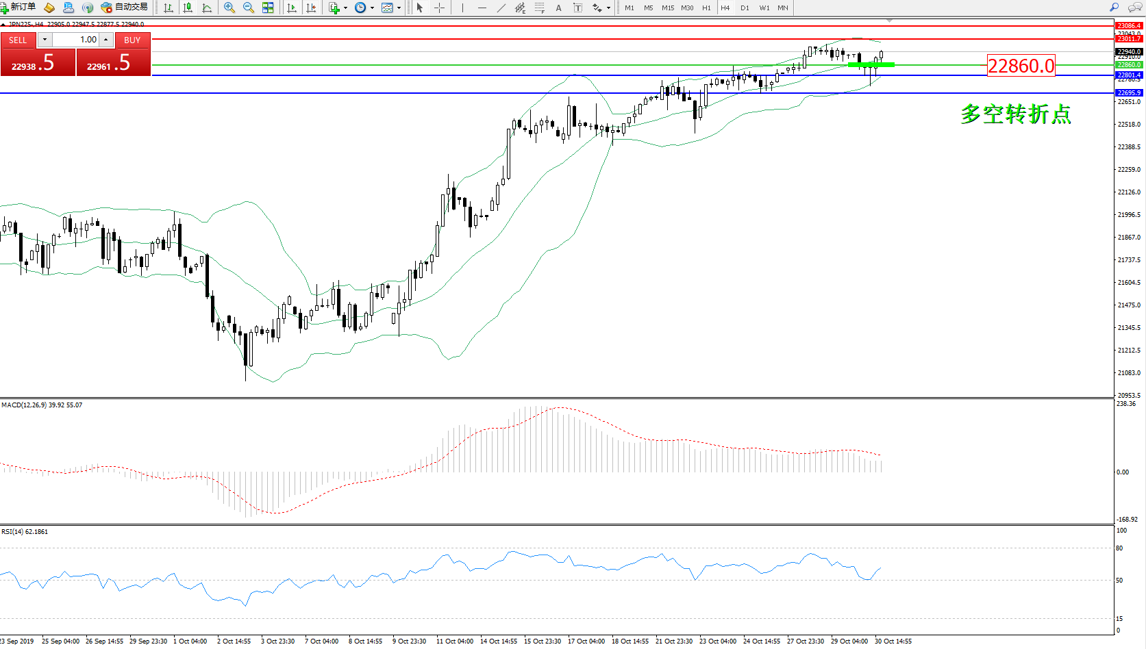 技术点评:多头处于高位持续震荡中,在维持布林带指标中上轨震荡上行后遇阻回撤至中下轨附近再次拉升,布林带指标呈收口走势,有再次上行态势,MACD指标处于多头区域缓慢回撤迹象,RSI指标处于多头区域高位回撤至50均衡线后又再次拉升,多头动力强劲;