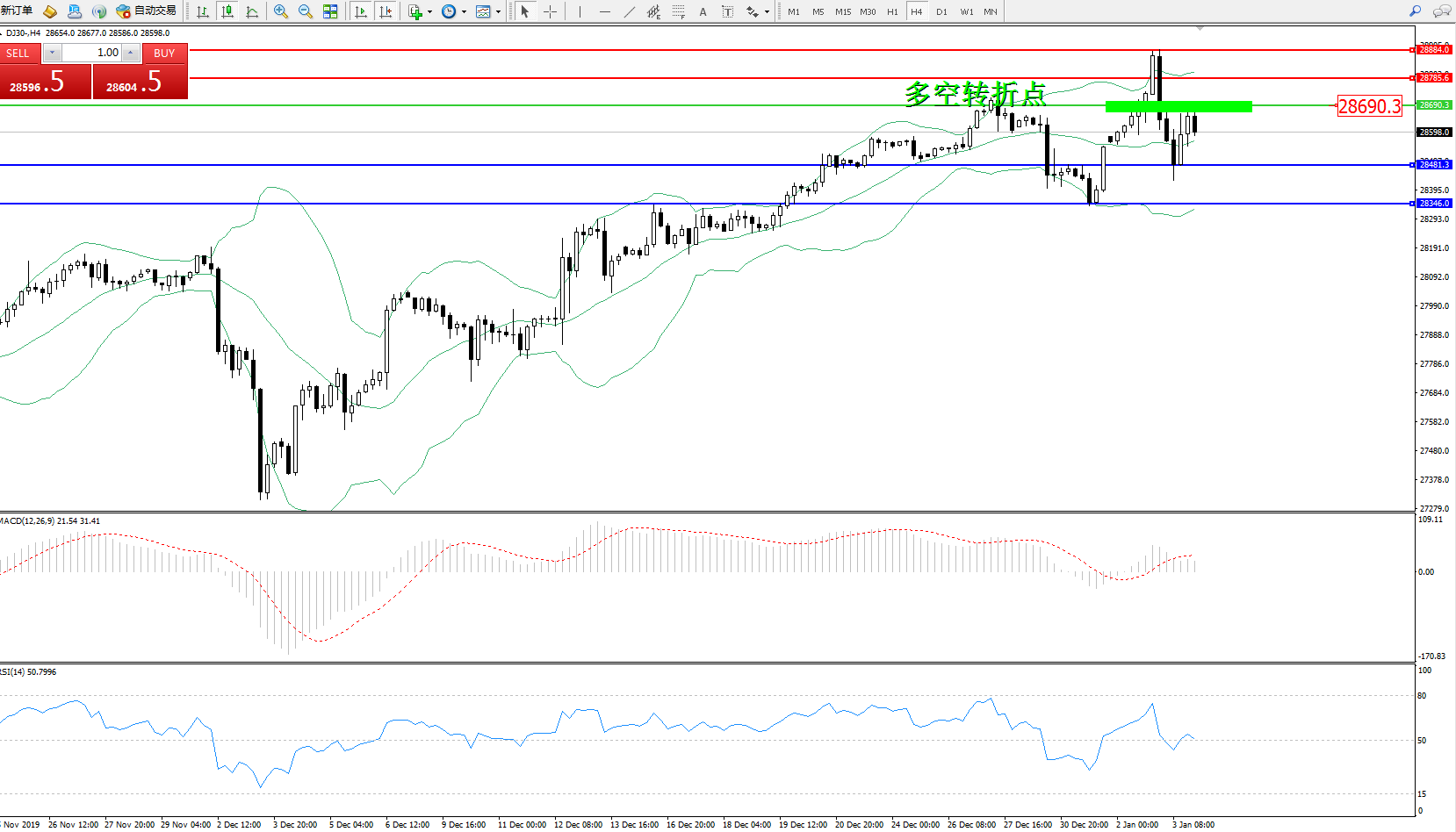道琼斯指数1月3日(周五)收盘下跌233.90点,跌幅0.81%,报28634.88点。周五美股大跌,标普500指数创下一个月来最大跌幅,投资者担心中东紧张局势升级可能会削弱全球经济增长。中东的事态发展打击了股市的看涨情绪。在经历长时间的上涨后,市场正在寻找一个触发修整的因素,风险因素在于其会拖累全球经济复苏,打压市场信心,进而拖累盈利水平。