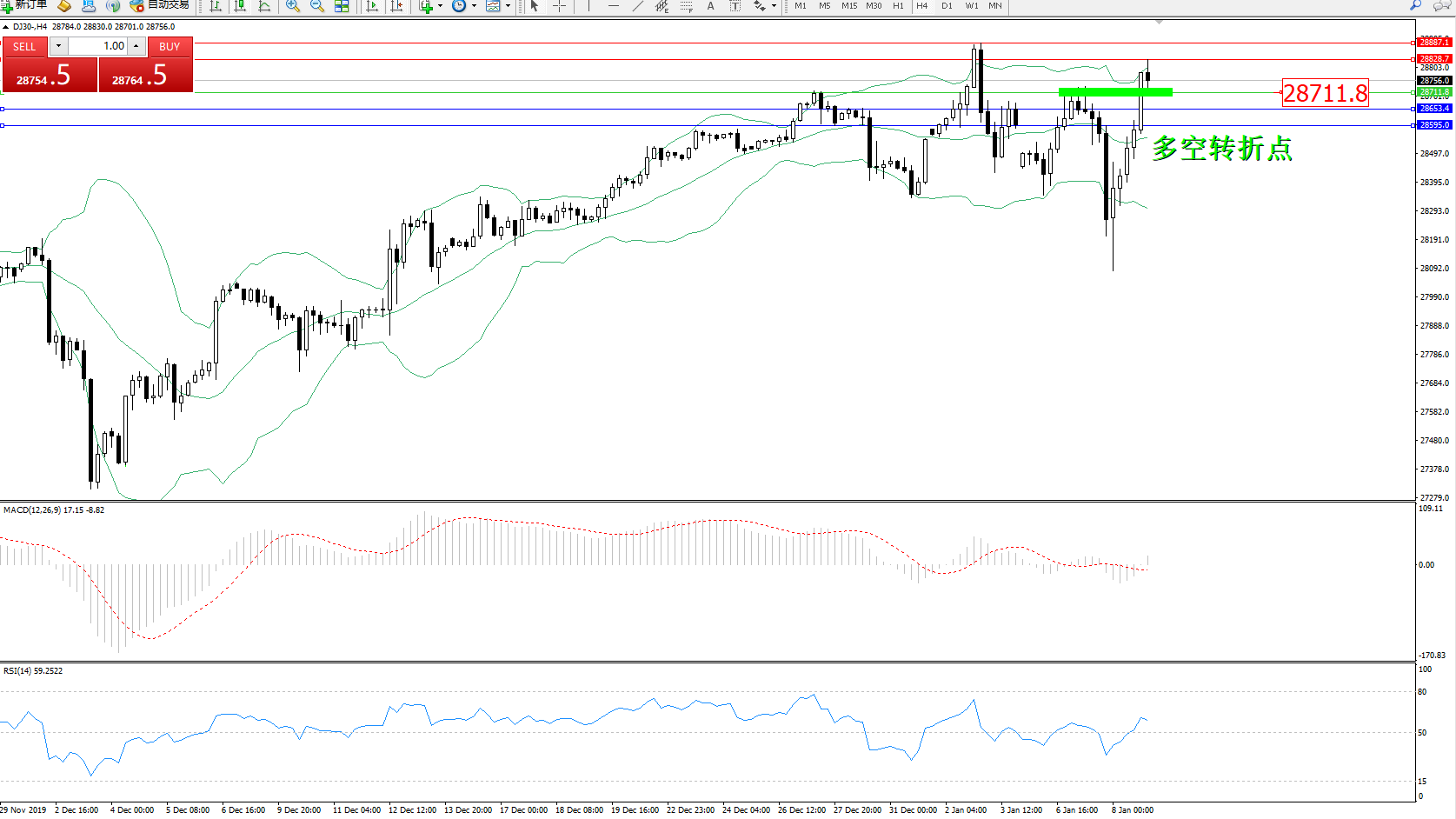 道琼斯指数1月8日(周三)收盘上涨161.50点,涨幅0.56%,报28745.13点。伊朗报复袭击美国驻伊拉克军事基地而出现波动,但伊朗导弹击中区域没有美国人,美元指数重拾强势;同时美国ADP就业大幅好于预期,此前贸易账数据显示,美国整体贸易逆差在2019年12月降至2016年10月以来三年多新低,这显然是美国总统特朗普所乐见的状况。美国总统特朗普称,永远不会允许伊朗获得核武器。伊朗似乎没有进一步行动。袭击中,只造成非常小的损失。将对伊朗施加额外的制裁。