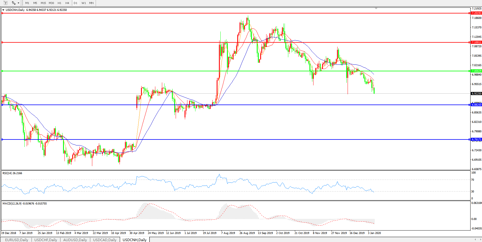 交易策略: 在7.0000之下,看跌,目标价位为6.8820,然后为6.7600。