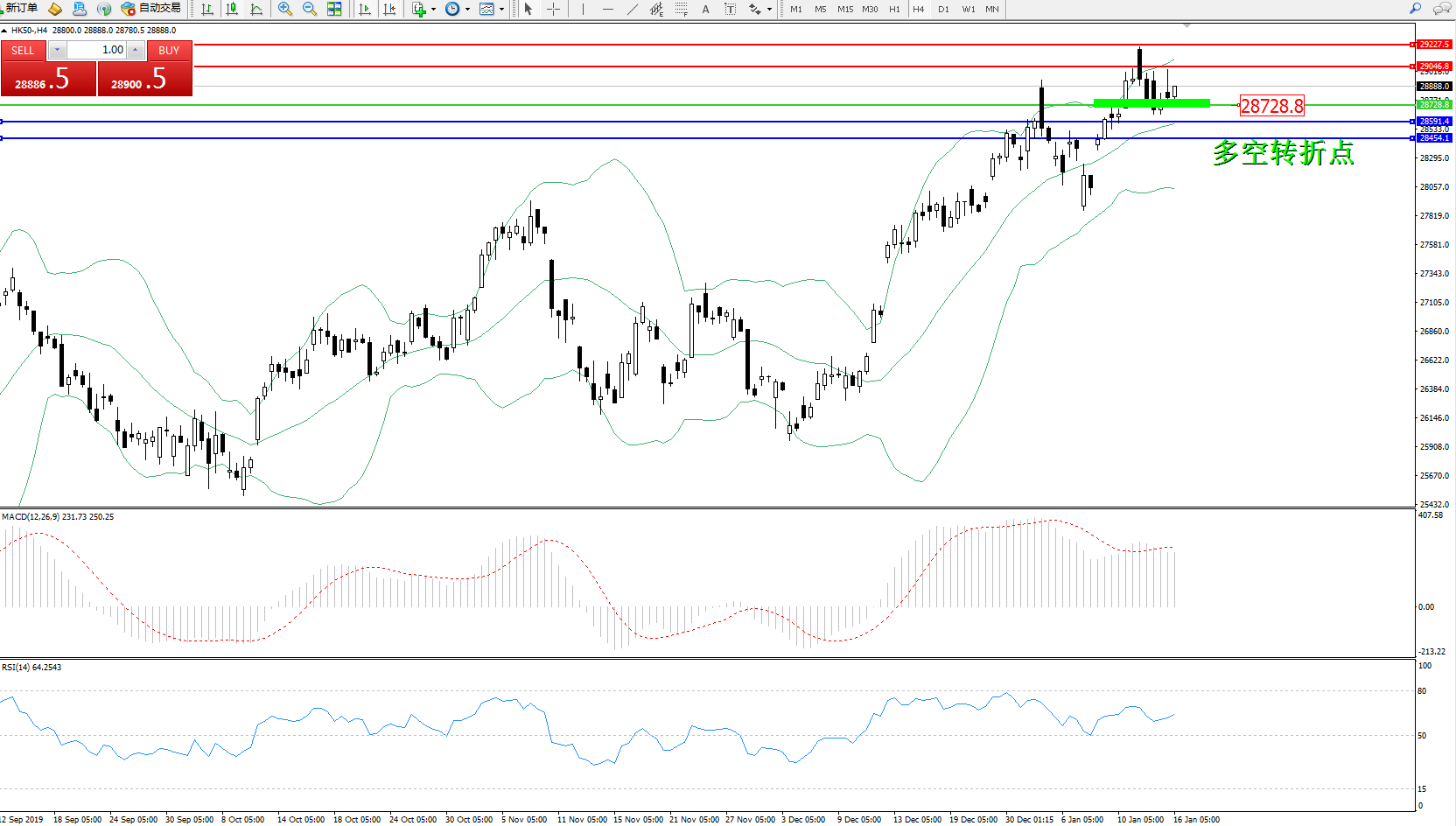 技术点评:多头动力维持在布林带指标中上轨区间震荡上移中,且布林带指标呈张口走势,有进一步市悠闲态势,MACD指标处于多头区域持续震荡平移,RSI指标处于多头区域持续徘徊整理;