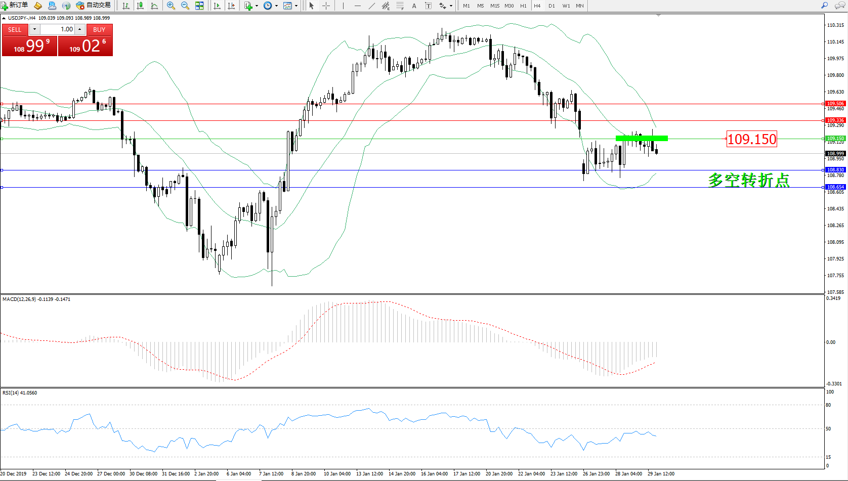 美元日元USDJPY——4小时K线图显示: