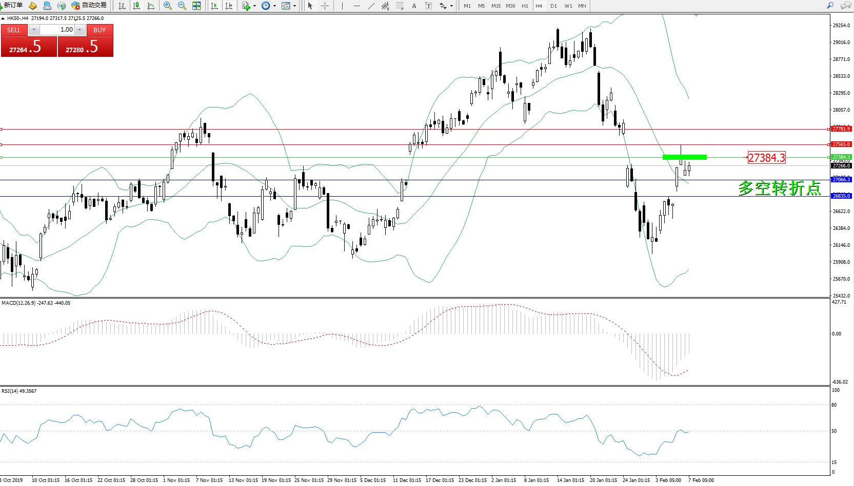 香港恒生指数2月7日(周五)收盘下跌89.43点,跌幅0.33%,报27404.27点;截至今日收盘,恒指大市成交额报935.75亿港元(上一交易日成交额为1317.26亿港元)。日港股市场震荡收跌,未能延续反弹。昨日受肺炎药物进展提振,加之中美贸易持续缓和,市场集体大涨,今日未能延续,且大市交易明显下滑。受肺炎疫情影响,“宅经济”持续爆发,在线教育和游戏股表现活跃,药品股持续强势。本周累计上涨约4%,创去年12月初以来最大单周涨幅。今日华为与苹果概念股板块持续疲软。