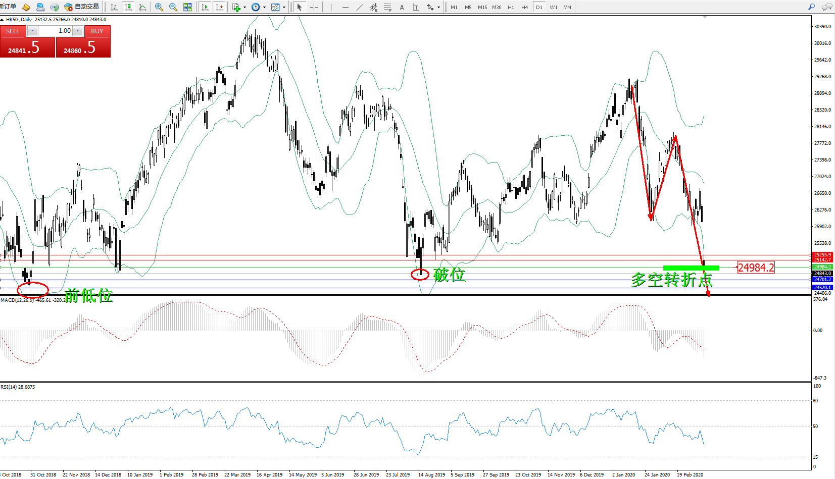 恒指HK50 ——日K线图显示: