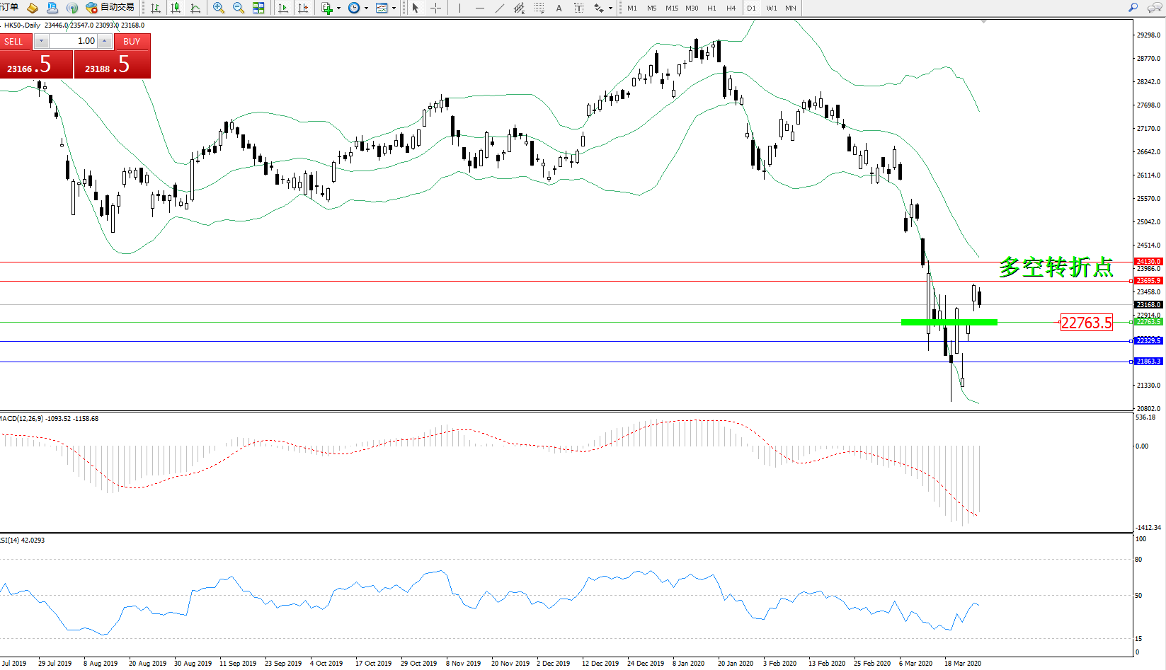 香港恒生指数3月26日(周四)收盘下跌174.85点,跌幅0.74%,报23352.34点,港股市场未能持续走强,主要股指盘中皆跌超1%。继连续反弹后,市场做多动力衰退,观望情绪明显增强。海外疫情仍旧严峻,目前多国纷纷出台政策,短期国际金融市场或结束急跌处于震荡行情。主板成交量为1217.79亿港元,港股通净流入36.18亿港元。亚太股市收盘涨跌互现,欧洲主要股指低开,恒指承接过去两天升势高开77点报23604点已为全日最高位,在银行股走弱下恒指调头向下,最多跌363点见23163点。及后美国参议院全票通过刺激经济议案,将提交众议院表决,港股一度反弹转升,美国股市再度上涨,因投资者推测国会即将通过的2万亿美元救助计划将缓和冠状病毒大流行对经济的冲击。