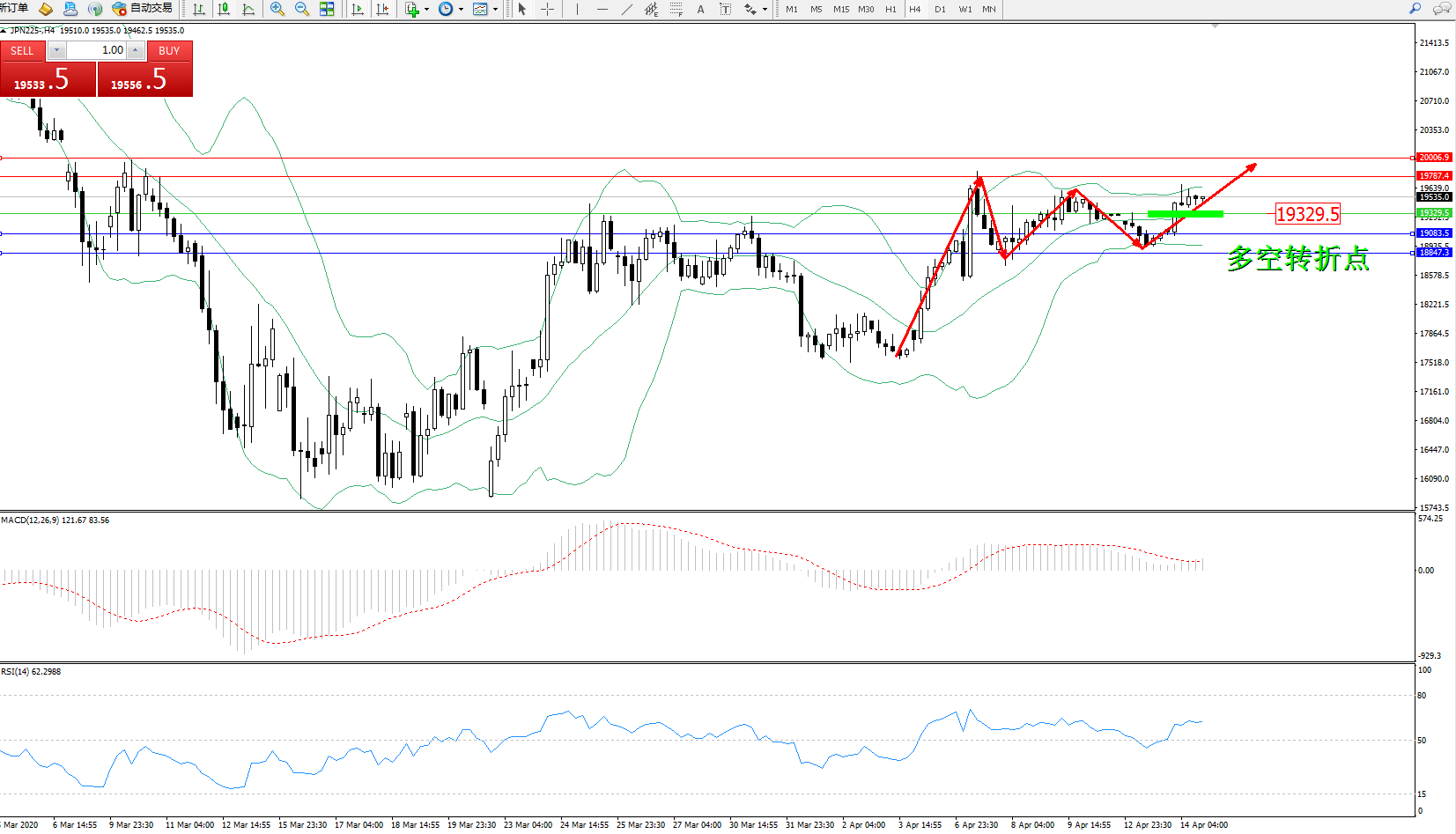 日经指数JPN225——4小时K线图显示: