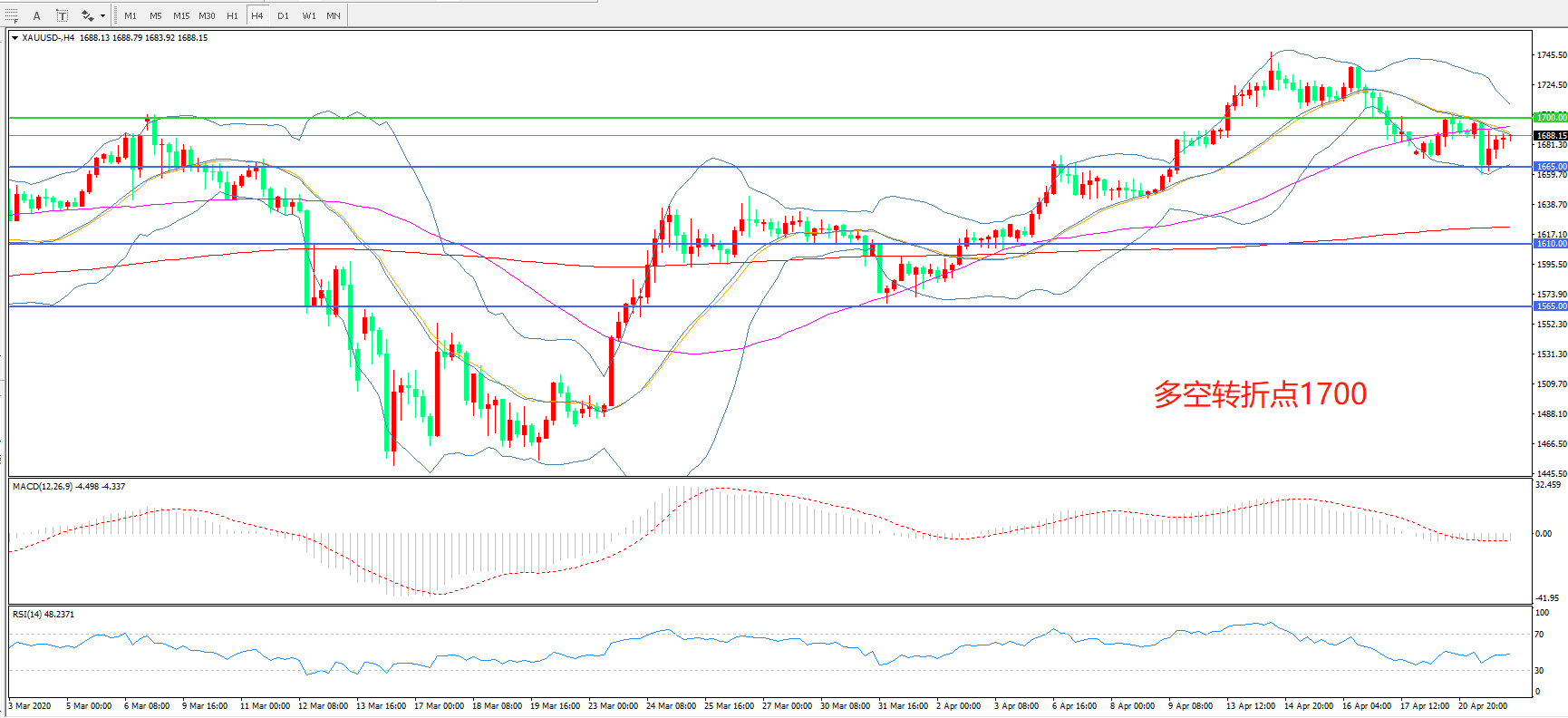 交易策略:  在1700.00 之下看跌,目标1665.00   1610.00