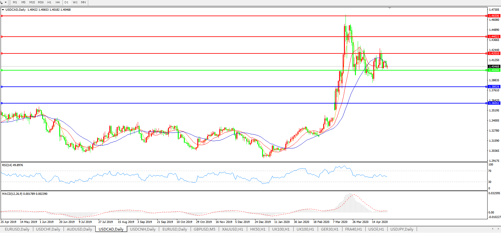 交易策略: 在1.4000之上,看涨,目标价位为1.4200、1.4400