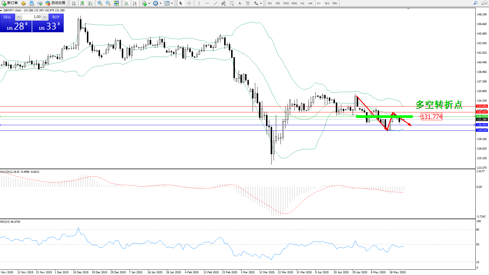 英镑兑日元纠结于131.774附近,无协议脱欧的可能性越来越大。英国和欧盟之间日益紧张的关系可能会导致贸易协议谈判破裂,因为英国政府的谈判方式看不到任何变化。到6月1日的下一轮会谈,将不得不改变在一些问题上的立场。早在正式贸易谈判开始之前,英国首相约翰逊就曾表示,如果到6月谈判进展不足将退出谈判。英国政府必须在6月30日前要求延长过渡期,否则英国将于12月31日离开欧盟,不管有没有协议傍身。