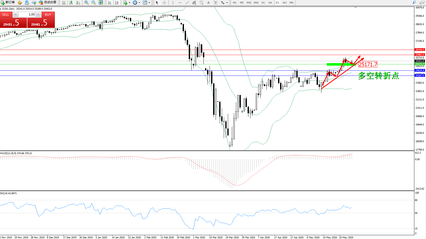 道琼斯指数6月1日(周一)收盘上涨91.90点,涨幅0.36%,报25475.02点。美国股市收高,科技股为主的纳斯达克综合指数跑赢大盘,虽然美国各地爆发骚乱,但投资者更专注经济复苏的迹象。经济迈向复苏的进展可能有助于抵消地缘政治、疫情和社会动荡所带来的短期挑战对股市造成的压力。整个市场在6月都可能面临很多意外。这将是一段波动很大的时段,美国开始复工,再加上地缘政治风险等。备受关注的美国制造业指数在5月份出现四个月来首次上升,表明因新冠疫情而急剧降温的制造业活动开始在低迷水平上企稳。5月制造业采购经理指数(PMI)从4月触及的11年低点41.5升至43.1。该指数低于50代表活动减少。生产和工厂就业指数均从数十年低点小幅上升,订单指数继前一个月创下1951年以来最大单月跌幅后回升。