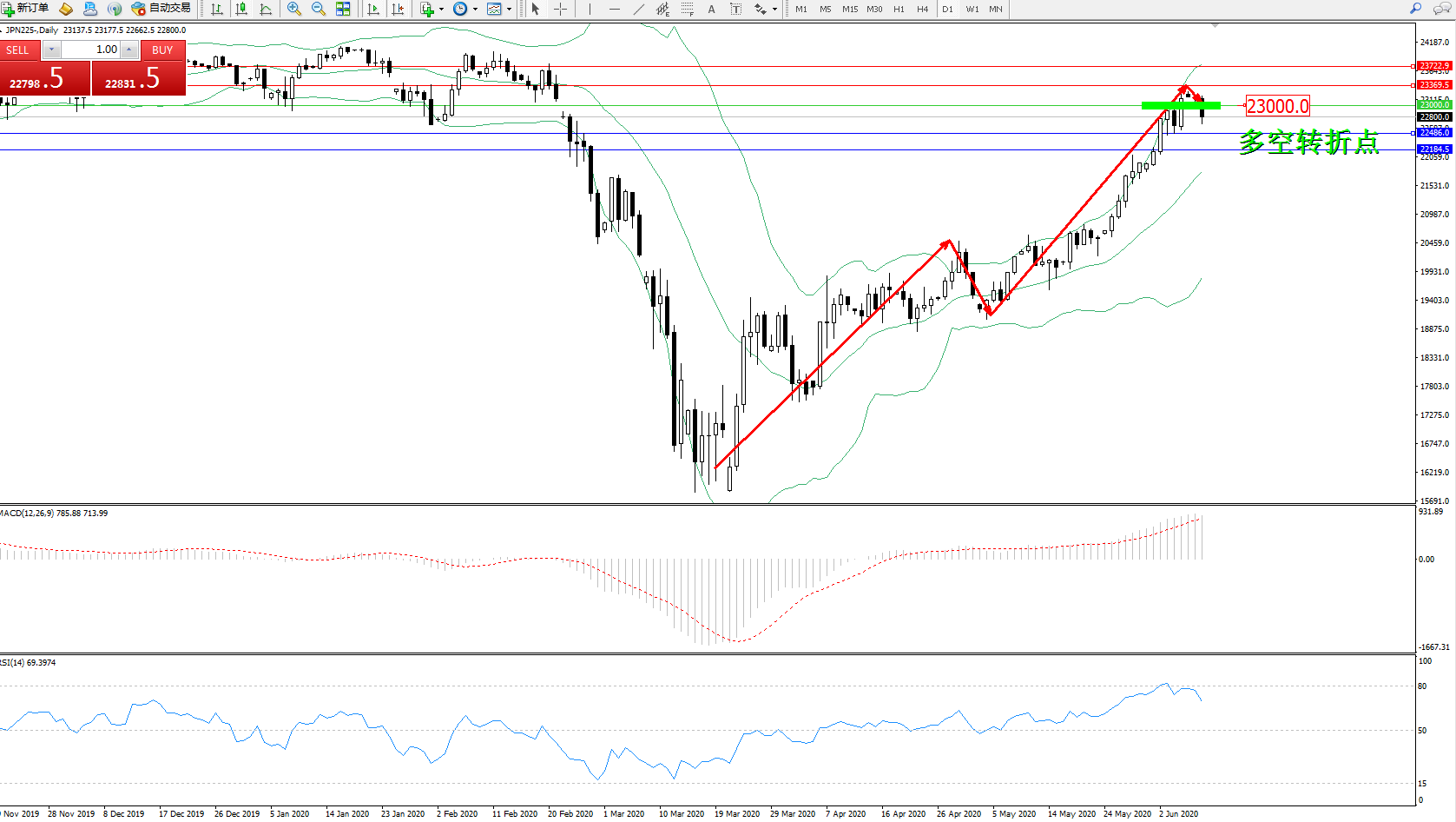 日经225指数69日(周二)收盘下跌82.10点,跌幅0.35%,报23096.00点。日本首相安倍晋三:日本经济当前正遭受比雷曼危机时更大的打击,需要采取前所未有的措施来保障就业;经济前景不确定性依然存在,风险人气没理由火力全开,因此市场参与者在经历了汇市上周的走势后决定进行获利了结;东京股市下跌引发短线基金进行美元多头平仓,进而推动了汇率的跌势;这基本上是昨日走势的延续,市场认为美联储有实行收益率曲线控制的可能。市场参与者目前在等待美联储周三结束的为期两天的政策会议,不过由于非农就业岗位意外增加,他们已经不再预测美联储会采取负利率的可能性。