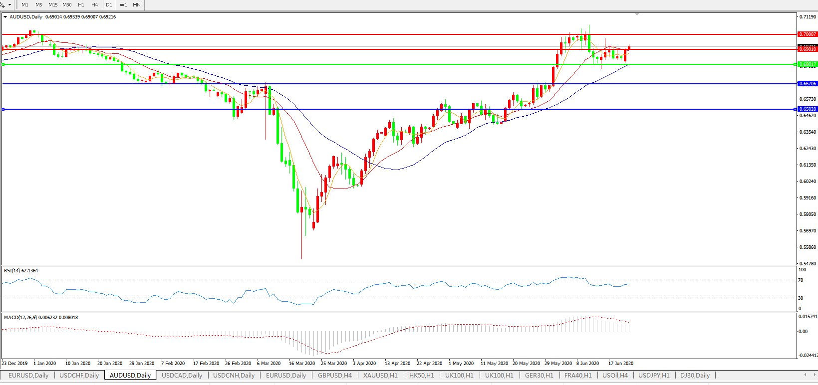 交易策略:0.6800上方看涨,目标0.6900、0.7000