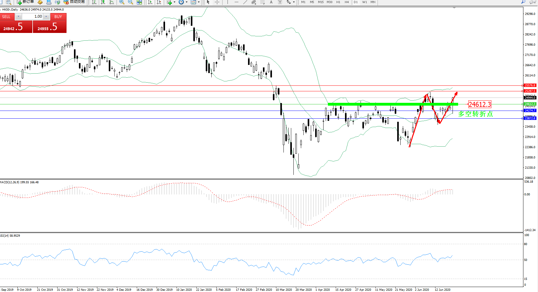 香港恒生指数6月23日(周二)收盘上涨396.00点,涨幅1.62%,报24907.34点;港股三大指数均收涨超1%,,国指涨1.16%报9993点。重磅蓝筹股表现活跃,腾讯大涨近5%创历史新高,为恒指贡献143点,其次是友邦保险涨2.46%贡献57点,港交所涨2.7%再创新高。恒指成份股半数以上涨超1%,市场做多氛围强烈,但大市成交并未有效放大,成交额不足1200亿港元。半导体、系统软件强势领涨,复星国际与阿里巴巴等公司洽谈出售菜鸟价值130亿美元的股权。复星国际寻求以近200亿美元估值部分或全部出售菜鸟6.7%的股份。端午节假期即将来临,6月23日(星期二)至6月27日(星期六)不提供港股通服务,6月28日(星期日)为周末休市,6月29日(星期一)起恢复开放。