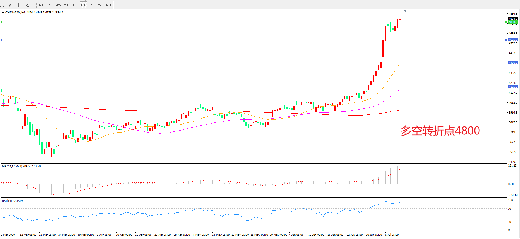 周四(7月9日),沪指连续8天上涨,次新股掀涨停潮,沪深300高开高走,收报4834点。据统计,7月份7个交易日,两市成交已经突破9万亿元,这几乎相当于正常市况下,一个月的平均交易量,北上资金继续流入,并明显超过6月全月净流入水平。