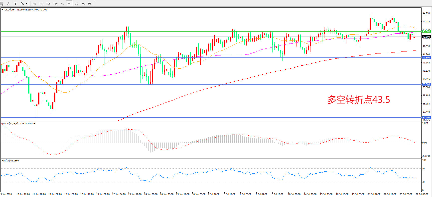 多空转折点:43.50
