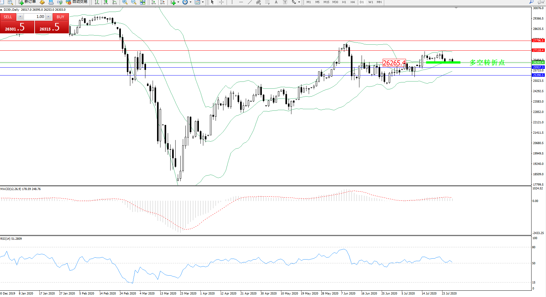 道琼斯指数7月28日(周二)收盘下跌205.50点,跌幅0.77%,报26379.28点。美国股市下跌,在全球新冠疫情猛烈反扑之际,投资者在财报季寻找新冠疫情反弹是否会导致公司业绩和经济脱离复苏轨道的迹象。美联储将大部分紧急贷款计划延长三个月至年末,以帮助仍在疫情中艰难挣扎的经济。一些防疫封锁措施的受益者,也看到许多公司因此深受重创,年内仍然存在很多不确定性。美国议员准备就经济刺激计划展开磋商,投资者担心全球新增病例数攀升。美国7月消费者信心指数降幅超过预期,美国参议院共和党周一提出一份与白宫共同商定的新冠疫情援助计划,不过,该计划立即遭到民主党和共和党的反对。额外失业补助将于四日之后到期。