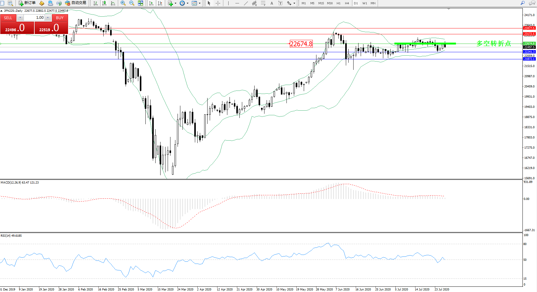 日经225指数7月28日(周二)收盘下跌70.35点,跌幅0.31%,报22645.50点。美国10年期通胀保值债券(TIPS)的实际收益率此后可能跌至负1%;原因在于当前全球疫情重新抬头的背景下,美联储的宽松预期已经进一步加码;上周,美国10年期TIPS收益率已经跌至负0.90%,已远低于此前市场恐慌高峰期间今年3月份时负0.62%的低位。鉴于市场运转良好,长期国债收益率仍处于较低水平,美联储在目前阶段几乎没有必要改变措辞或立场;在这种背景下,尤其是在市场等待另一个财政刺激方案的谈判结果之际,美联储将对复苏保持谨慎态度,并将联邦基金目标利率维持在0-0.25%不变,同时不改变其定量宽松政策的立场;对于资产购买方面,美联储将保留“以目前的速度继续购买,以维持市场的平稳运行,从而促进货币政策向更广泛金融状况的有效传导”的措辞。
