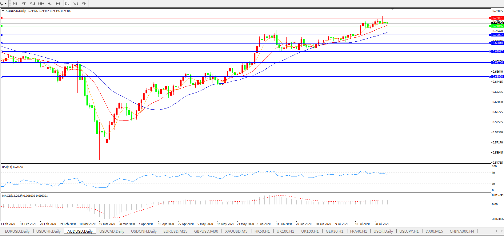 交易策略:0.7000上方看涨,目标0.7100、 0.7200