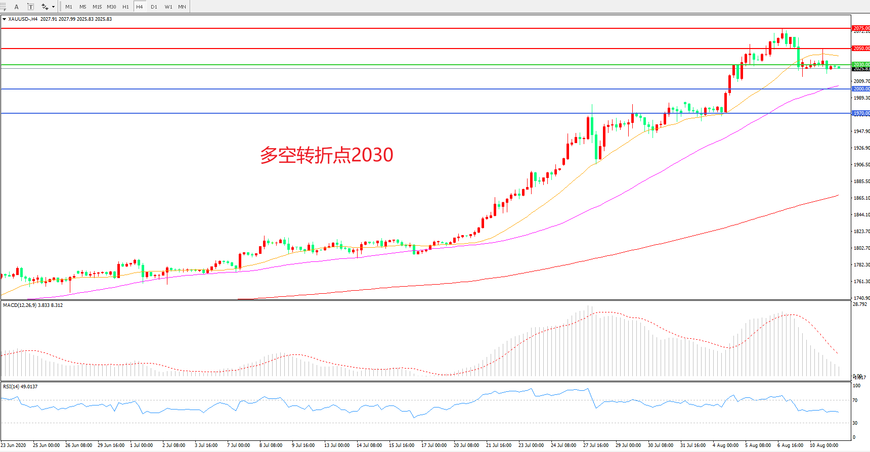 周一(8月10日),美元回升影响了投资者对黄金的态度,也引发了市场获利了结的情绪,现货黄金冲击2050阻力后震荡下行,收报2028.08美元/盎司。在经历连续的非理性暴涨后,市场回撤并释放一些空间是十分正常的,随着各国央行继续印钞来支持全球经济,黄金依然会是对抗通胀的最可靠选择。