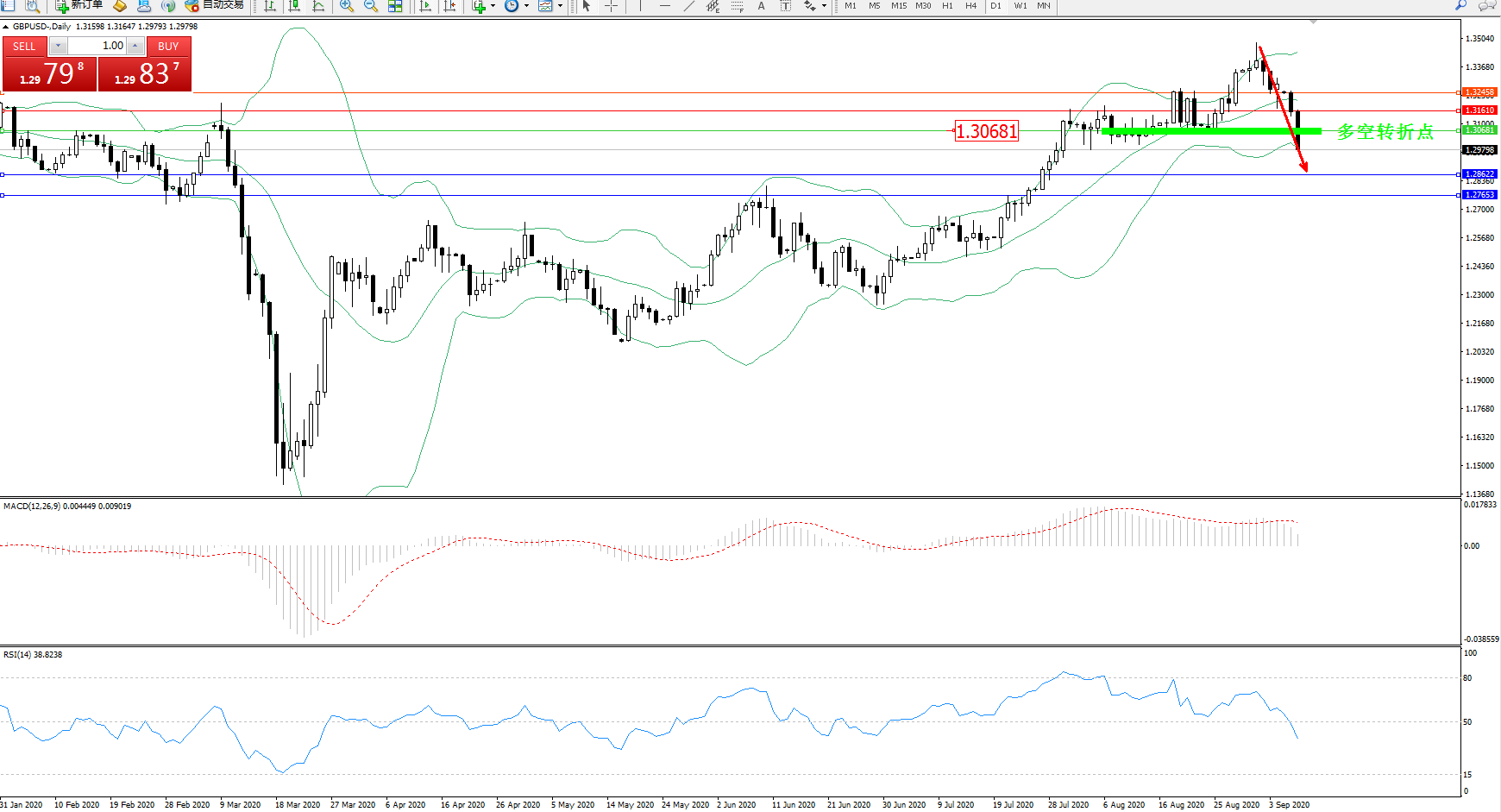 交易策略:1.30681下方看跌,目标1.28622、1.27653