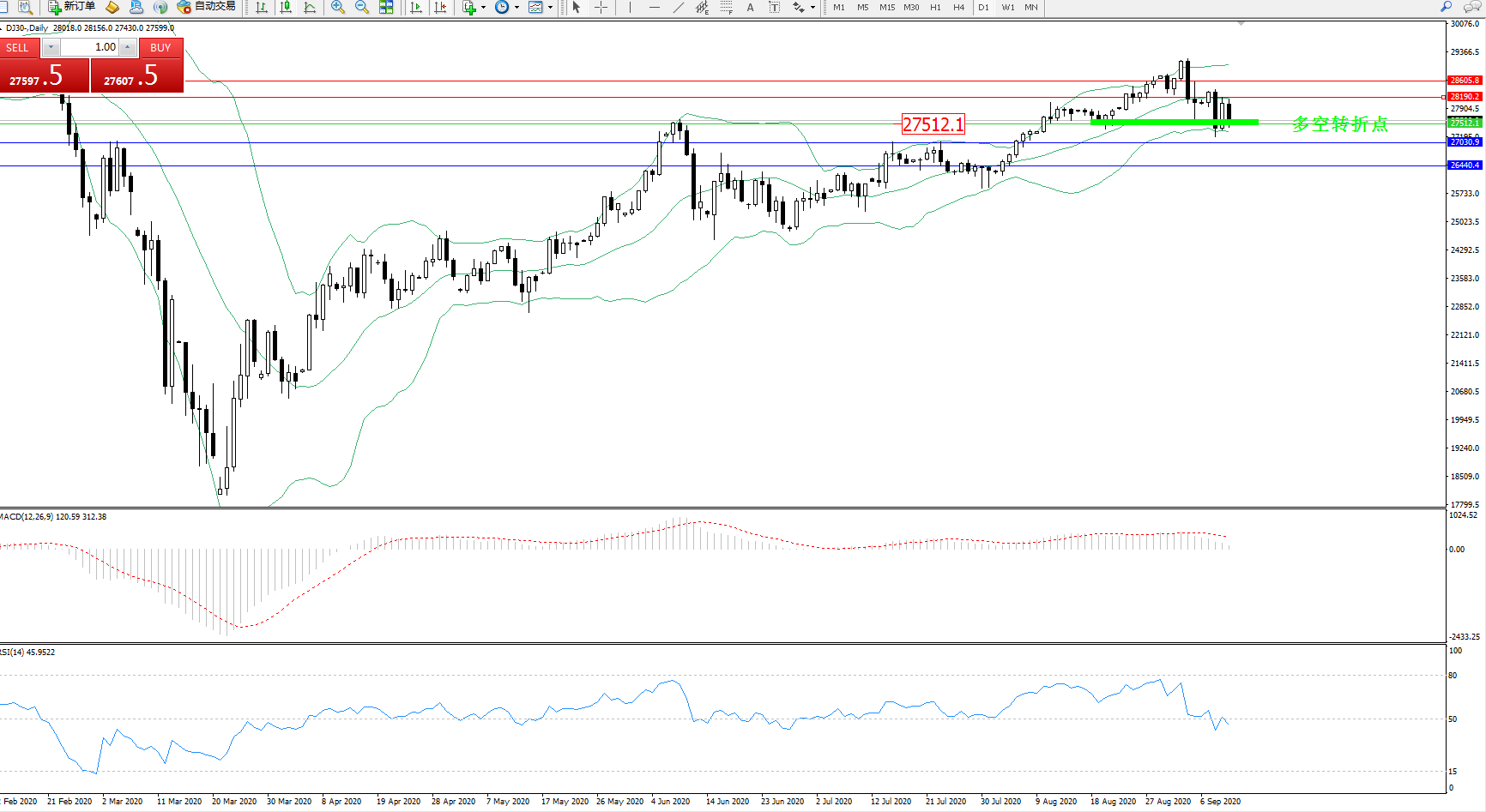 道琼斯指数9月10日(周四)收盘下跌405.90点,跌幅1.45%,报27534.58点。受针对大型科技股的新一轮抛盘拖累,美国股市五天来第四天下跌,投资者仍然担心股市在经历五个月上涨后估值水平过高。连续7个交易日的收盘涨跌幅超过1%。美国金融市场持续大幅震荡,美股在长达五个多月的上涨行情中市值增加近7万亿美元。市场有充分的保持警惕的理由,但决定市场基调的并非来自于单一因素。更多迹象显示新冠疫情仍在继续冲击全球经济。数据显示美国近期劳动力市场走强态势出现裂痕,国会在新一轮刺激法案谈判上仍分歧巨大。美国实施新一轮财政刺激的可能性周四降低,精简版共和党抗疫刺激法案在参议院遭到民主党阻拦。美元指数涨0.16%至93.39;数据显示,截至9月5日当周美国初请失业金人数经季节调整为88.4万人,与前一周持平,美元下滑;不过,美国生产者物价指数好于预期,整体物价指数上涨0.3%,核心价格指数上涨0.4%。