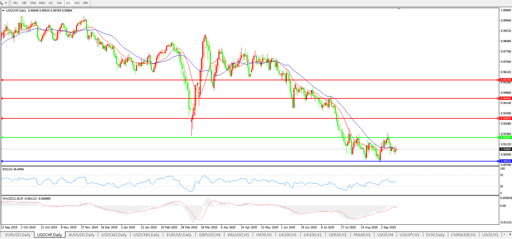 交易策略:0.9170下方看跌,目标0.9000、0.8950