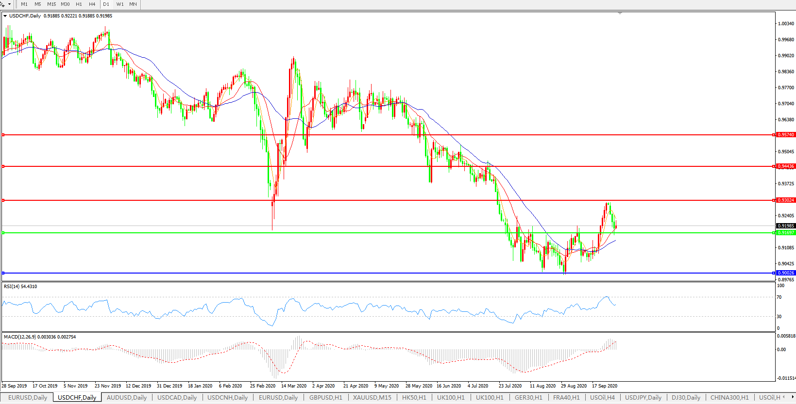 美元兑瑞郎USDCHF 日线图: