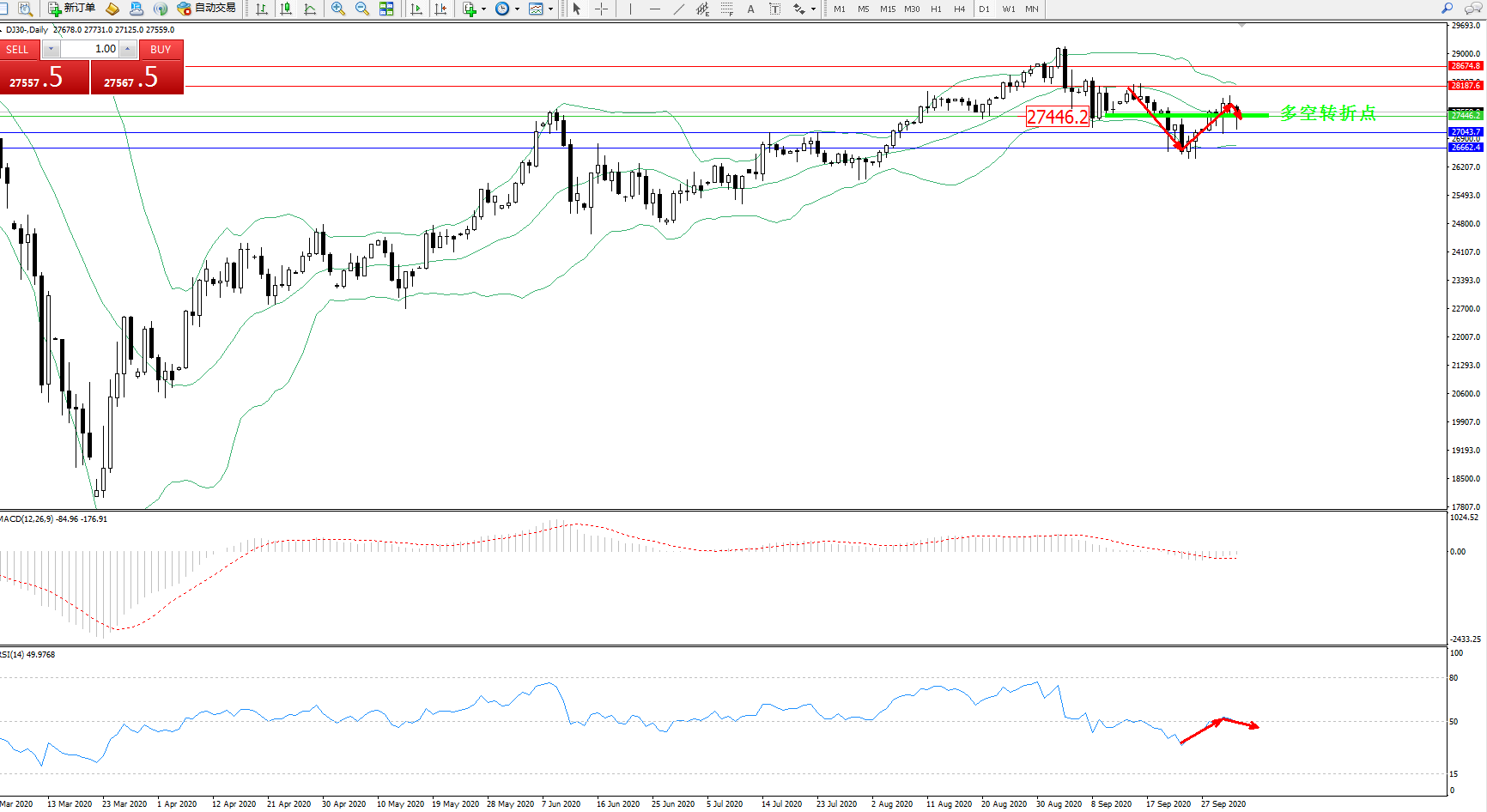 道琼斯指数10月2日(周五)收盘下跌134.10点,跌幅0.48%,报27682.81点。美股三大指数全线收跌,美元指数上涨0.12%,报93.818,但周线仍下跌0.8%,录得8月末以来最大单周跌幅。大型科技股领跌,航空股、银行股逆市走高。苹果,微软和亚马逊等科技股下跌;投资者在特朗普感染新冠病毒以及国会刺激法案谈判这两个因素间权衡摇摆。令人失望的9月份就业报告显示新增就业少于分析师预估,凸显了推出援助措施的紧迫性。有关刺激协议谈判的信号相互矛盾,也令股市受到了影响。交易员们已经做好了迎接选举前及选举后几个月市场大幅动荡的准备。CBOE波动率指数周五一度创下一个月来最高涨幅,后来回吐了多数升幅。无论是特朗普的健康问题还是就业报告,这场疫情都紧密相连,意味着推出财政刺激措施以及确保人们获得补充失业福利至关重要。几个月来一直淡化新冠大流行威胁的特朗普表示,他和他的夫人梅拉尼娅新冠病毒测试呈阳性,并将进行隔离,这打乱了总统竞选进程。这一消息引发了华尔街股市出现一些抛售,而美债价格在最初上涨后又下跌。