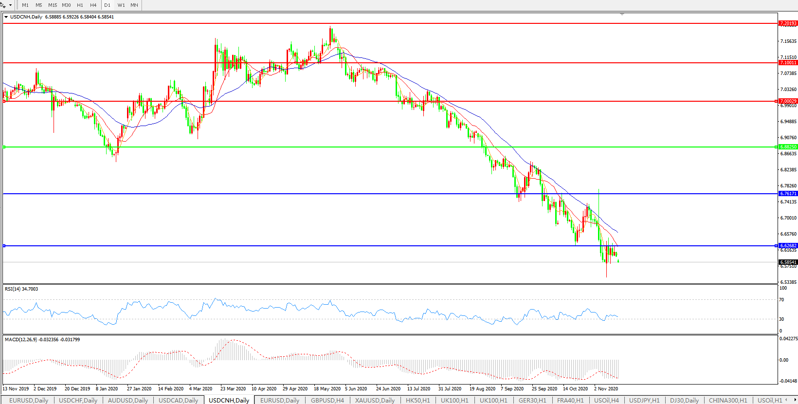 美元兑人民币USDCNH    日线图: