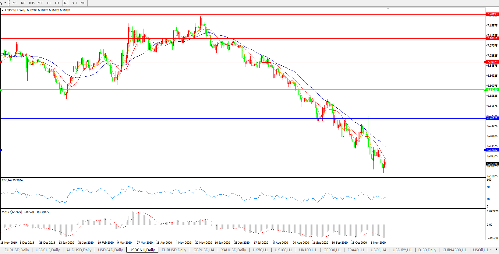 美元兑人民币USDCNH    日线图: