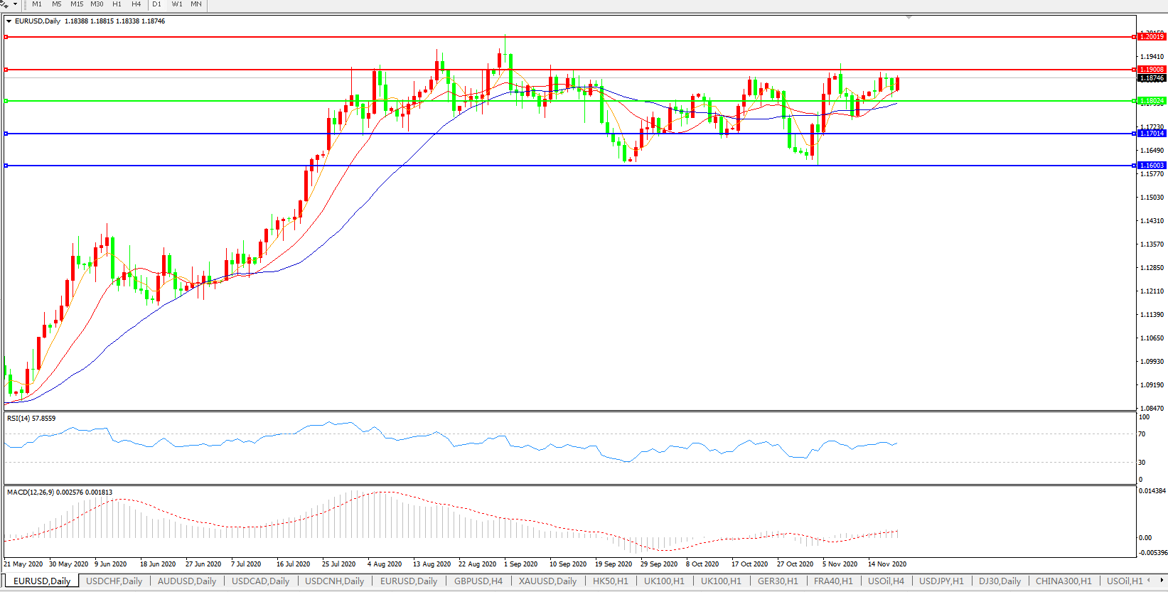 西太平洋银行的分析师指出,欧元汇价在周四欧盟视频峰会开幕前先行承压,因投资仍对欧盟财政援助计划前景感到担忧。而该行认为,美欧当前在消息基本面各自有一本难念经的状况,将令美元与欧元汇价继续同步承压,在直到明年年初的相当一段时间里,当前的横盘走势都将延续下去; 该行指出,一方面欧盟各国在援助协议的安排上仍有争议,另一方面美国选情的僵局也令财政援助措施难产,同等背景下,在年底之际欧洲央行与美联储将同步采取新一轮宽松行动,这意味着欧元兑美元的中期走势趋势仍是继续横盘。预计在直到2021年初的这段期限内,欧元兑美元汇价都将继续持于1.15-20区间