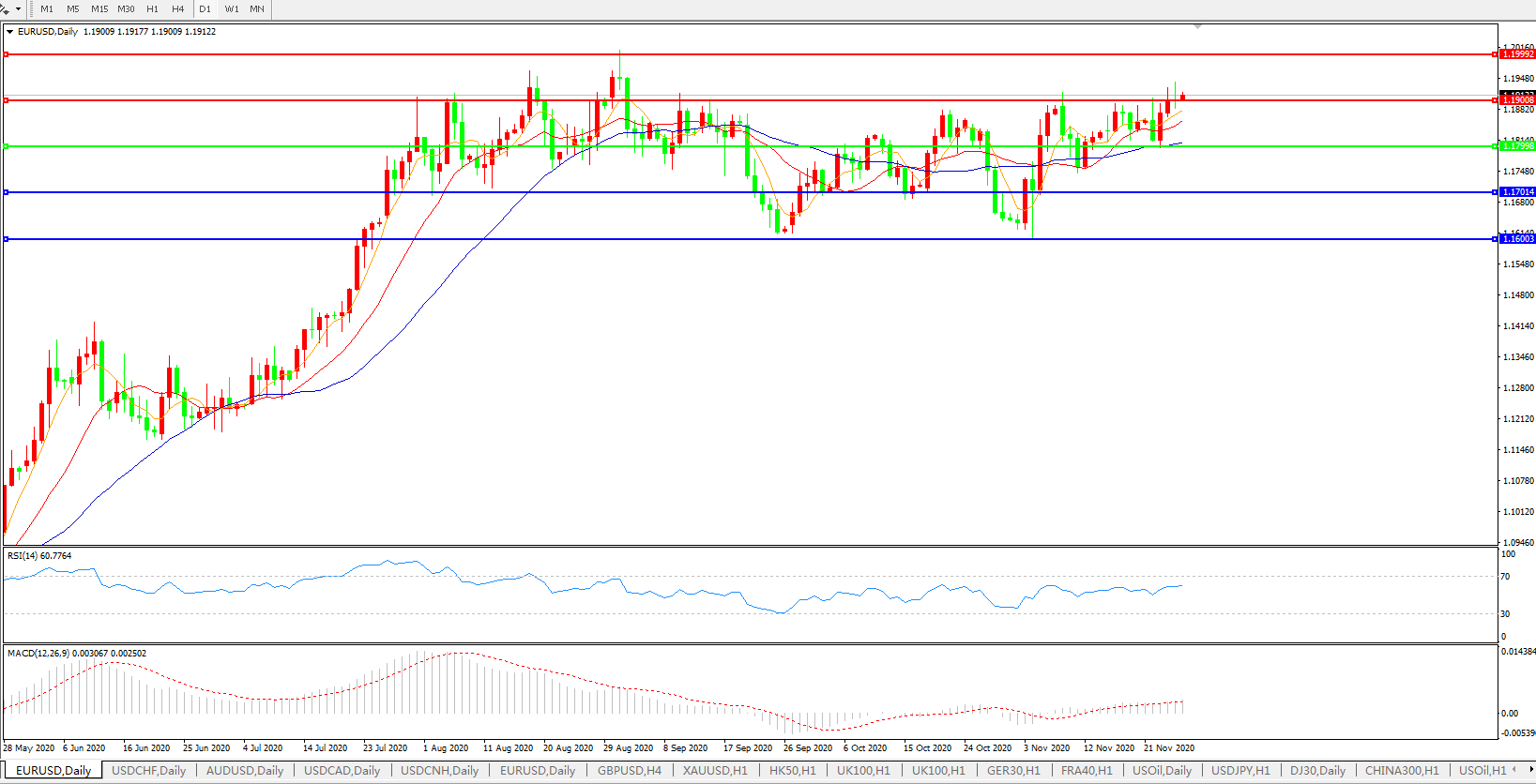 西太平洋银行认为,欧元兑美元在1.15-1.20区间阻力面临压力,因为市场对2021年经济复苏的希望超过了该地区新冠病毒疫情封锁的影响,此外投资者预计欧洲央行紧急购买计划(PEPP)和有针对性的长期再融资操作(TLTRO)有放宽的可能性;上周波兰和匈牙利否决了欧盟复苏基金及其7年预算,这对欧洲央行构成了进一步的压力,要求其通过重点调整PEPP和TLTRO工具来实施更大规模的宽松政策,有关调整规模的指导意见无疑将在12月10日的欧洲央行会议上提出;欧洲央行似乎特别担心前瞻性的家庭调查难以反弹,如果信心未能建立起来,在全员预测中,对第四季度二次封锁后出现坚实复苏的希望可能也会减弱,至少严厉的封锁似乎是有效的,因为病例数量从最近的峰值下降,人们越来越希望在节日期间放松限制;尽管欧元兑美元面临1.20的考验,但在12月10日的欧盟峰会召开之前不太可能突破这一水平。