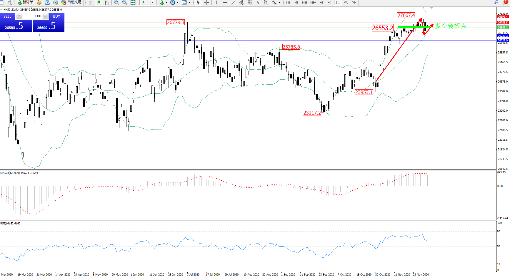 交易策略:26553上方看涨,目标26755、26993