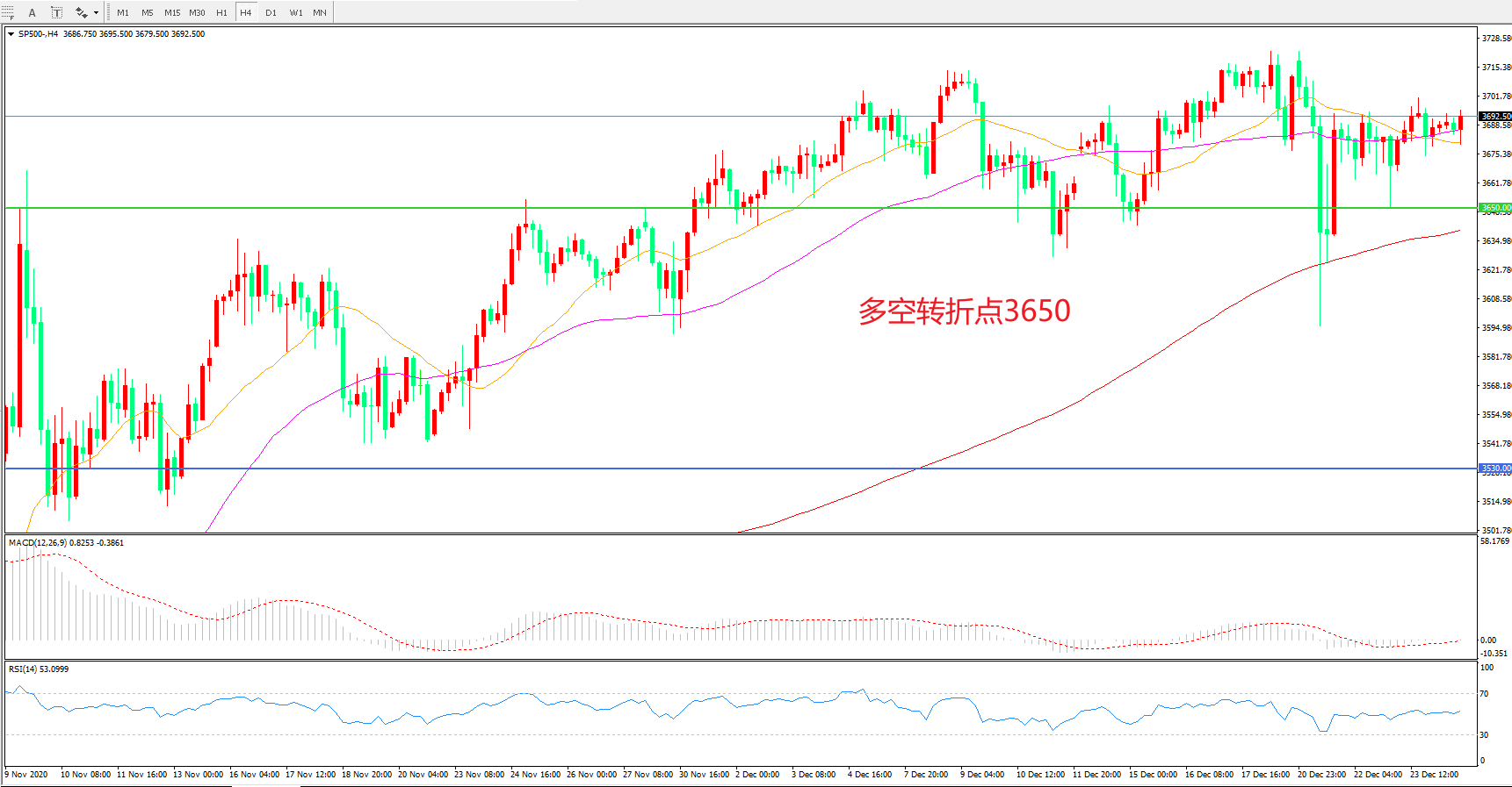 多空转折点:3650.00