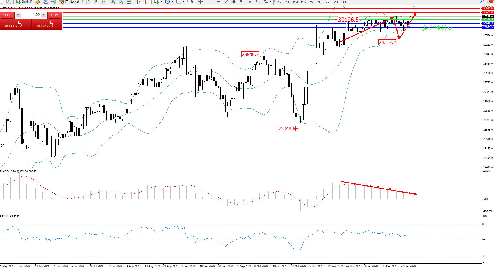 道琼斯指数12月28日(周一)收盘上涨204.10点,涨幅0.68%,报30403.97点。美股收盘,三大股指齐创新高,美国众议院议长佩洛西:众议院星期一会通过一项法案,将刺激资金增加到每人2000美元。美国财政部官员:将按照先前的计划,在这个星期开始向每人发放600美元的支票。如果国会增加经济刺激计划的金额,财政部将向那些已经收到支票的人发放补偿金。美国总统当选人拜登宣布白宫数字团队任命。该团队将主要负责通过线上平台向美国人民宣布政府最新动态。该团队由12位曾在拜登的总统竞选团队,过渡小组或成立委员会中有过工作经验的民主党人组成。这些工作人员将于1月20日拜登上任后进入白宫工作。拜登在一份声明中说:“与美国人民进行透明和诚实的沟通是总统最重要的职责之一。这个由多元化专家组成的团队在数字战略方面拥有广泛经验,他们将会使用创新的方式帮助白宫与美国人民建立联系。”