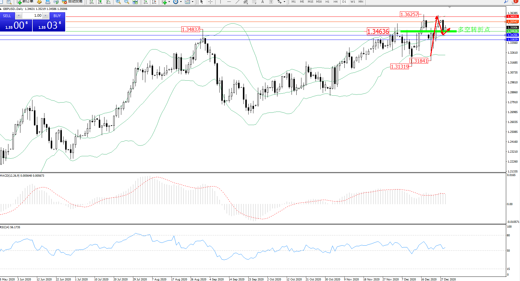 交易策略:1.34636上方看涨,目标1.35547、1.36031