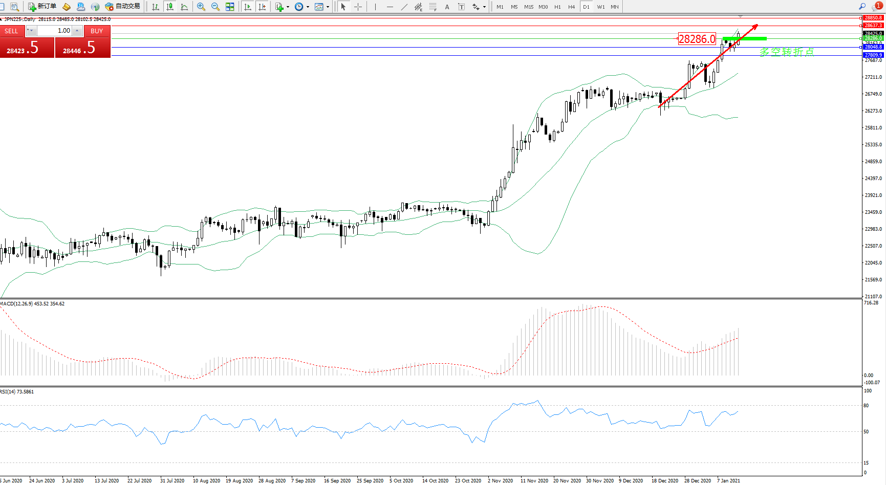 日经225指数1月13日(周三)收盘上涨296.66点,涨幅1.05%,报28461.00点。日本共同社消息,日本经济再生担当相西村康稔13日上午在众院内阁委员会会议上,对于把基于新冠病毒特别措施法的紧急事态宣言对象地区扩大至全国,表示了否定看法。西村康稔指出,把对私权的制约控制在最小限度是特措法的宗旨,“对于是否将对象扩大至东北、山阴等疫情控制较好的地区,必须慎重考虑。”知情人士透露,日本央行可能会在下周的政策会议上考虑下调其经济评估。此前,日本宣布部分地区进入紧急状态,以抗击最新一波疫情。日本央行官员表示,毫无疑问最新的紧急状态声明将对日本经济造成严重影响。知情人士称,从长期来看,日本央行可能不必改变其观点,即经济将从去年春季创纪录的季度萎缩中继续温和复苏。日本厚生劳动省:疫情专家小组批准将7个县加入紧急状态。日本国内新冠肺炎确诊病例到13日累计超过30万例。去年12月下旬超过20万例之后,仅三周多时间就增加了10据日本富士新闻网:日本北海道新增108例新冠肺炎确诊病例,新增4例死亡病例。东京新增1433例新冠肺炎确诊病例。
