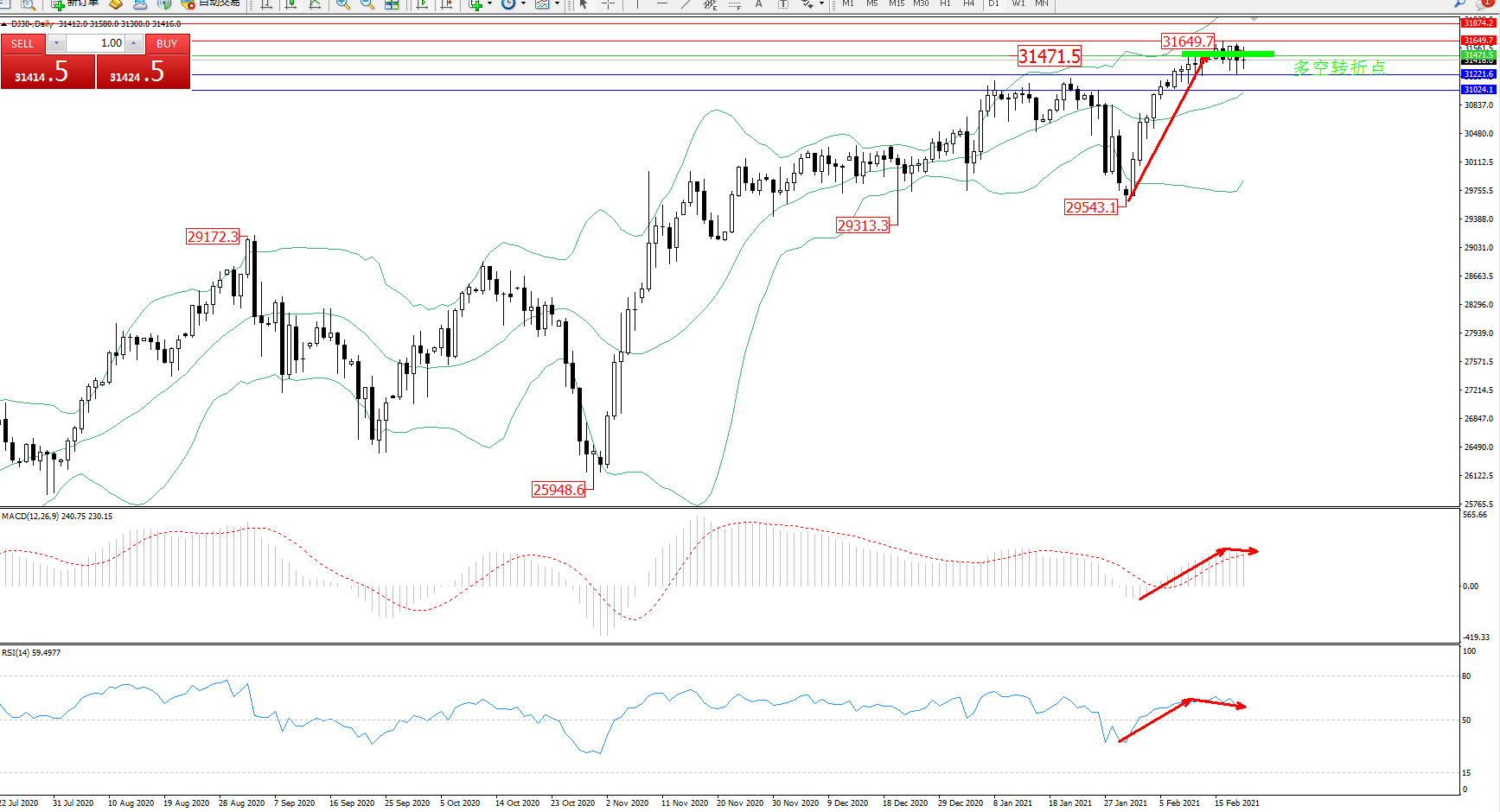 交易策略:31471下方看跌,目标31221、31024