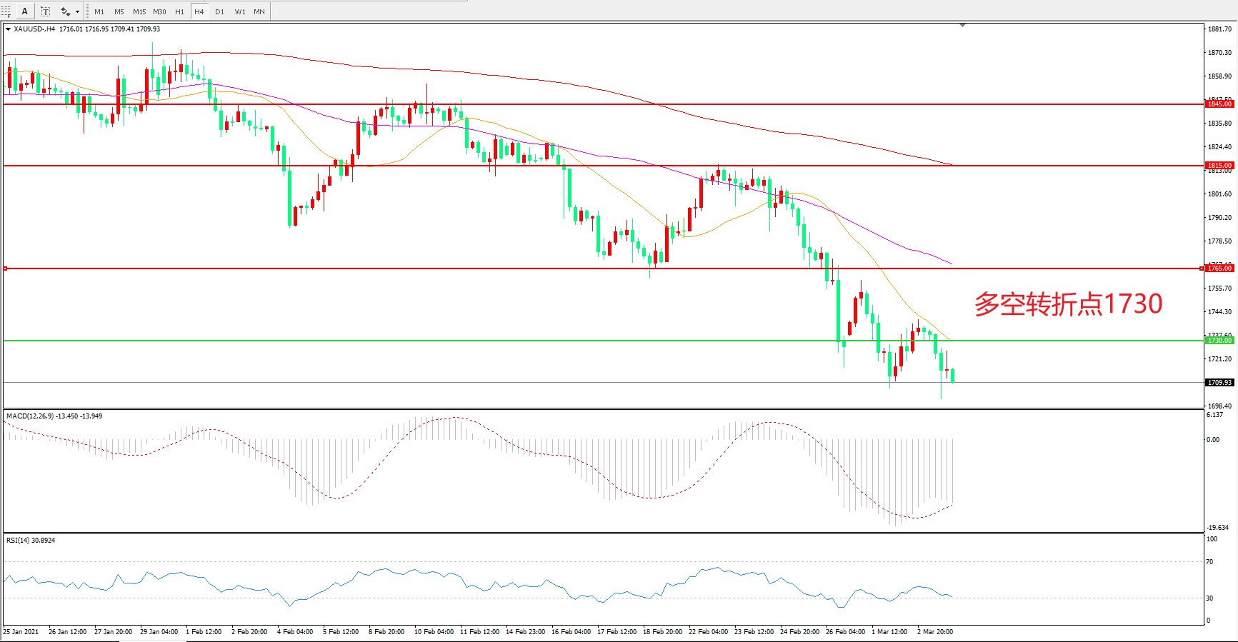 交易策略:在1730.00之下看跌,目标1700.00 1660.00