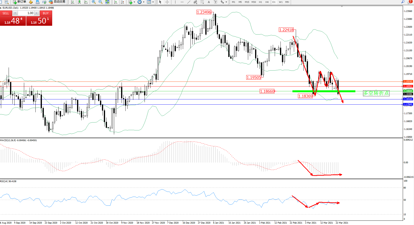 交易策略:1.18660上方看涨,目标1.18952、1.19243