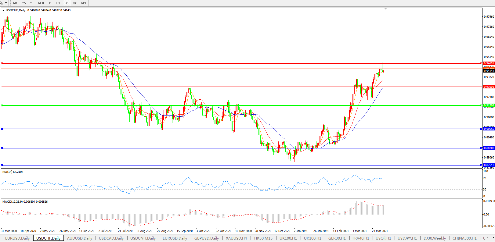 美指一季度表现靓丽,美元兑瑞郎冲高回落
