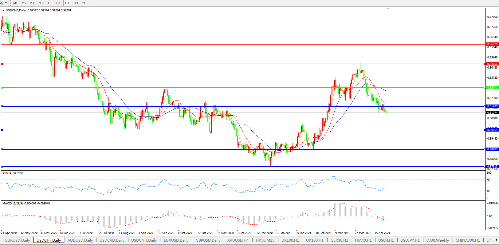 美元兑瑞郎USDCHF 日线图: