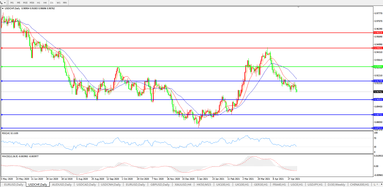 美债美元息息相关 ,美元兑瑞郎继续下行