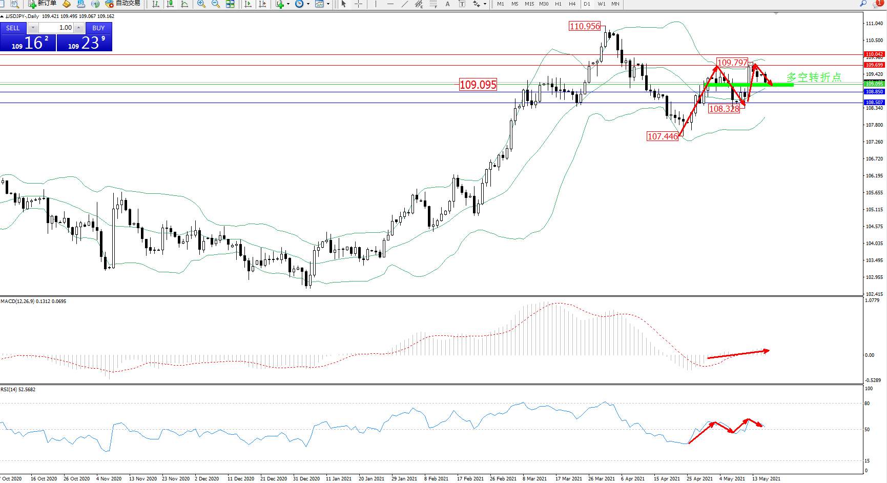 美元兑日圆高位109.162附近震荡,日本经济第一季度可能萎缩4.5%,其走出去年大流行病期间大幅下滑的势头出现逆转。尽管最近数据表明经济具有比先前预期更大的韧性,但政府上周五把疫情紧急状态扩大到更多地区,则加大了经济在本季度萎缩的风险。若周二将出炉的第一季度国内生产总值(GDP)数据好于预期,将有助于缓解人们对经济再次衰退的担忧。分析师们仍然认为经济会避免双底衰退,但很大程度上取决于疫情限制措施的持续时间。市场风险情绪仍喜忧参半,经济复苏与与疫情再燃消息交织,且美联储政策前景也在通胀与经济数据双料挤压下举棋不定,上周五美国经济数据低迷的影响仍在发酵,且日内亚洲新兴市场受到疫情抬头的冲击,也迫使资金重新流入日元市场。
