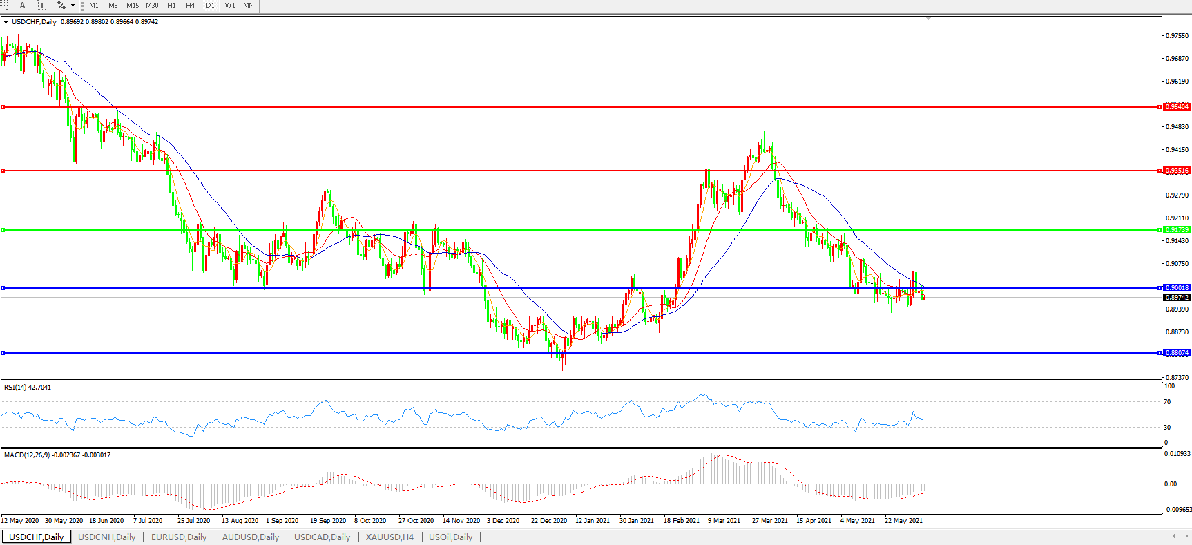 美元兑瑞郎USDCHF 日线图: