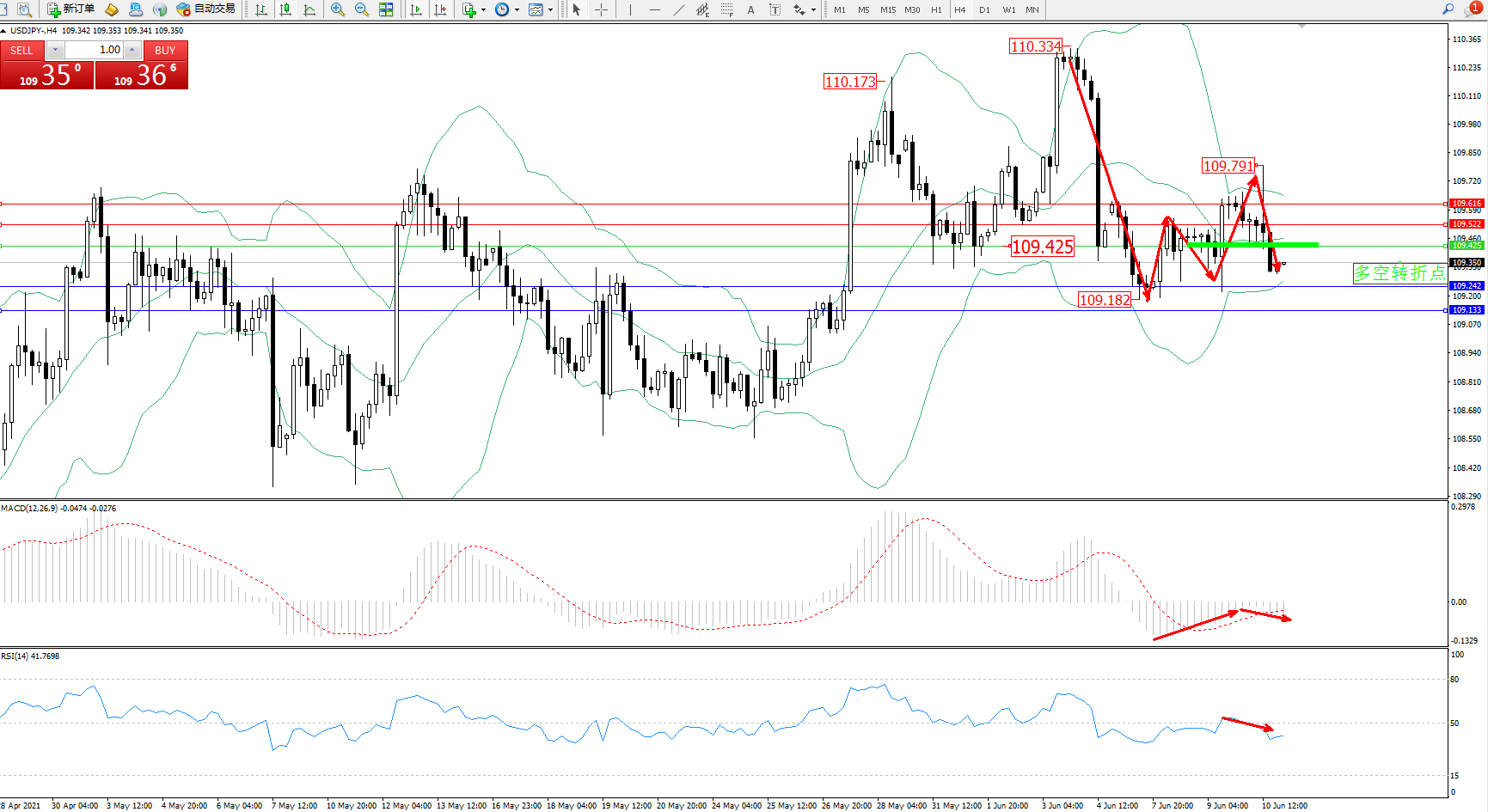 交易策略:109.425下方看跌,目标109.242、109.133