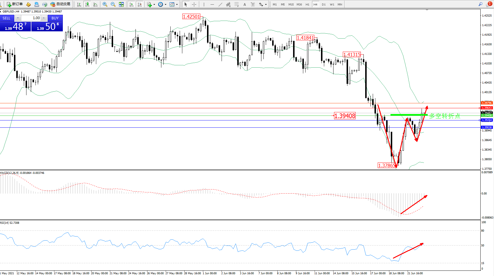 交易策略:1.39408上方看涨,目标1.39643、1.39796